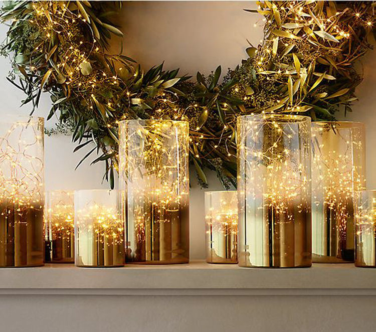 String lights don’t just have to be for your tree or mantel. Bunch them in glass vases...